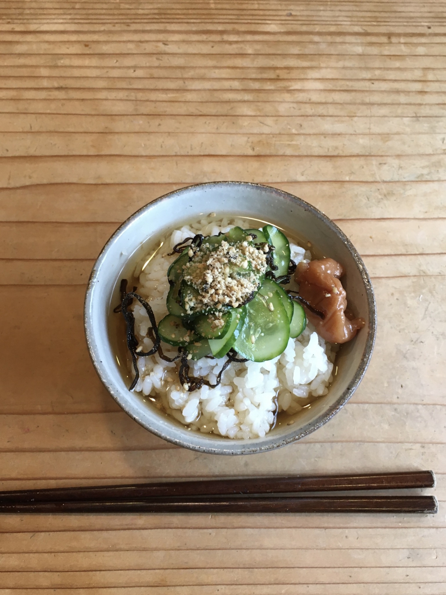 二日酔いの朝に きゅうりと梅干しのお茶漬け レシピ 作り方 By Ie Hok 楽天レシピ